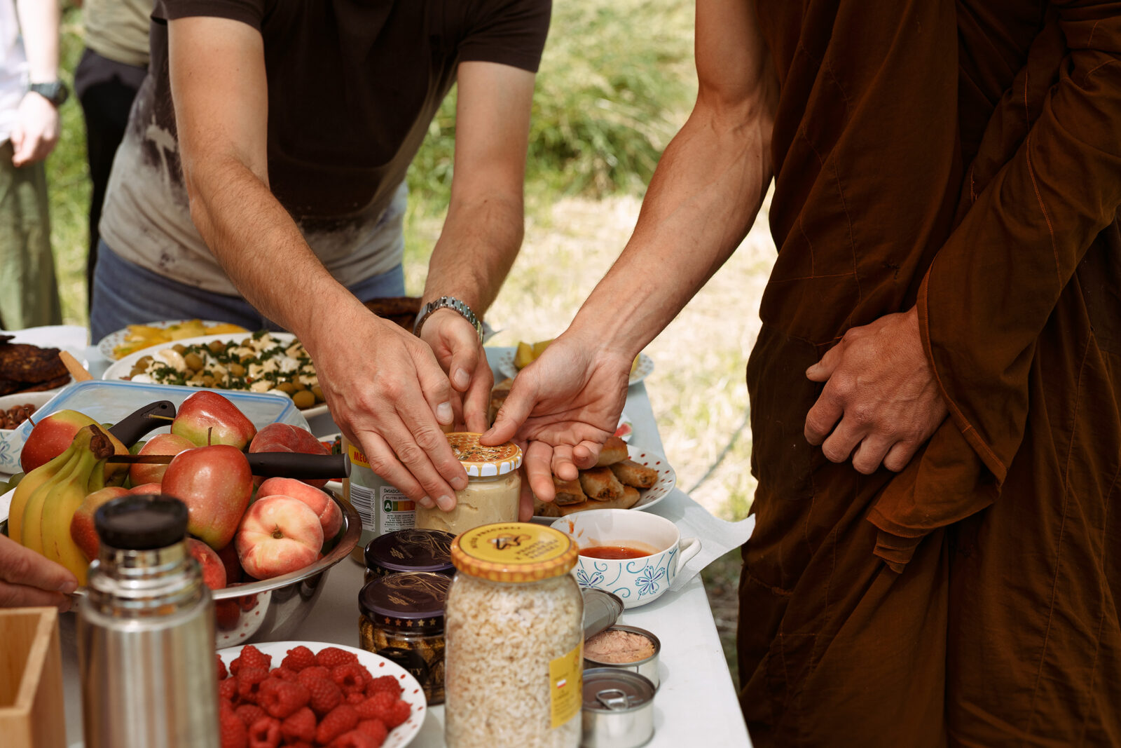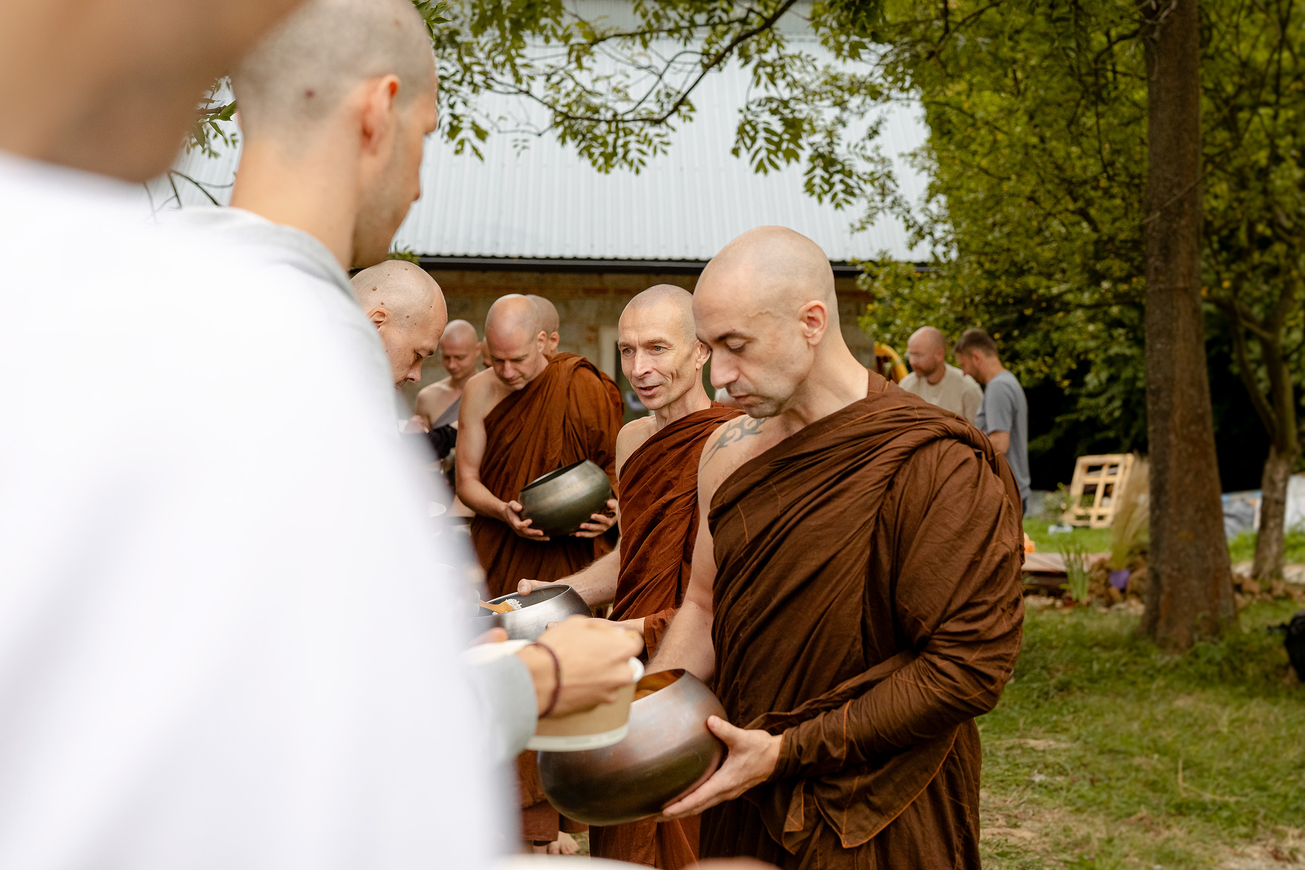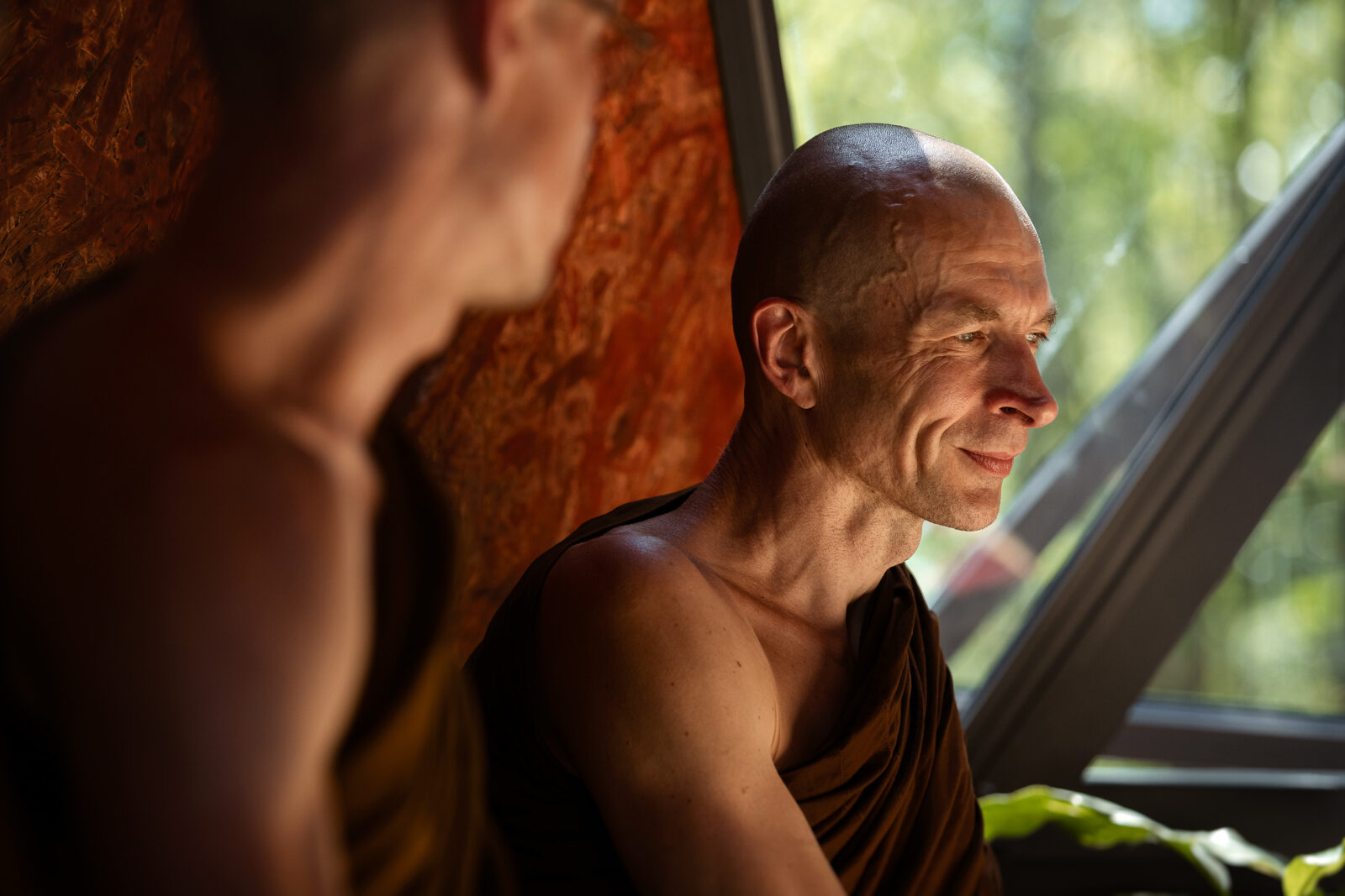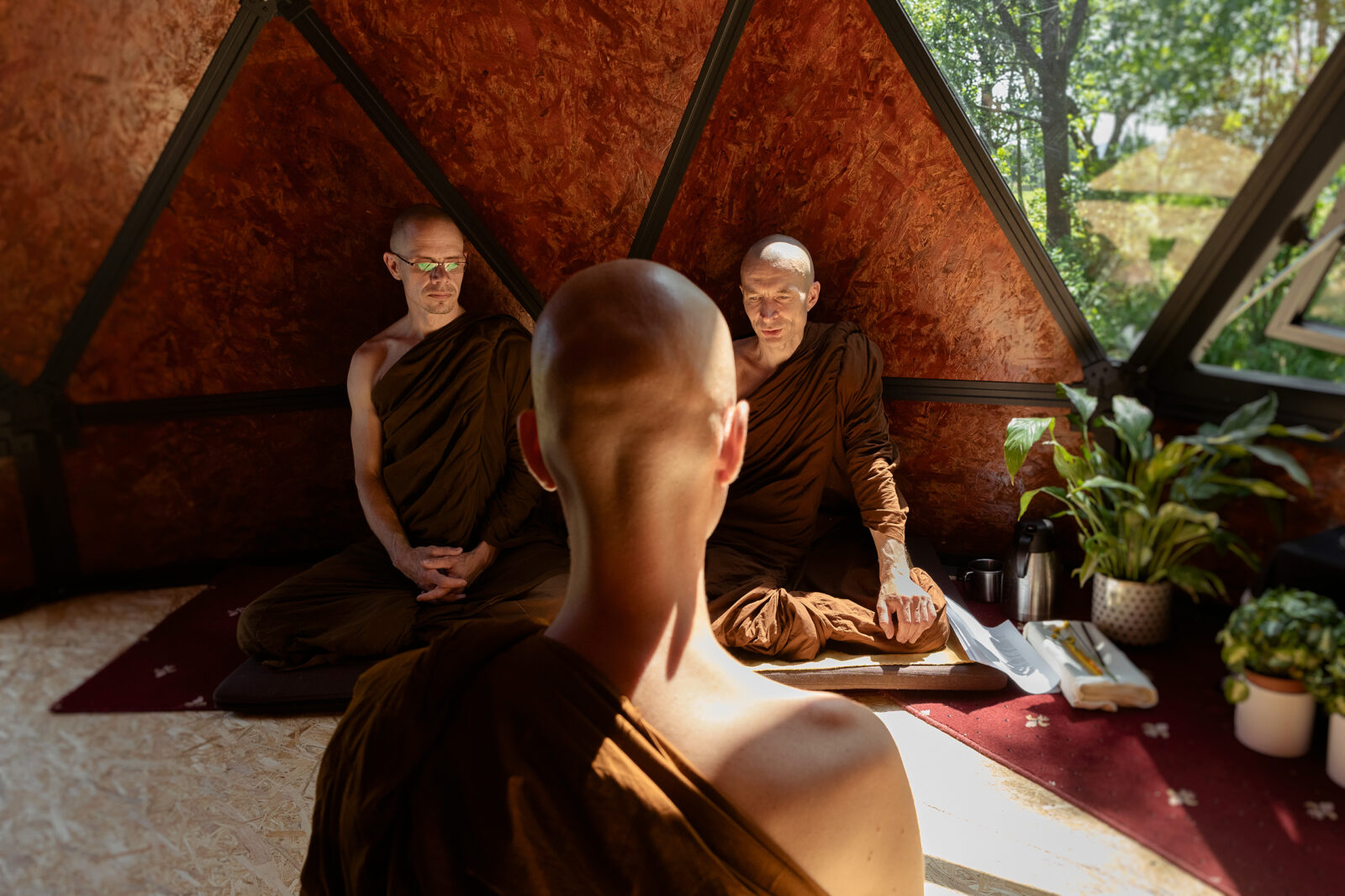 Jako fotografka – cicha i uważna obserwatorka wewnętrznych światów – nie szukałam wydarzeń ani narracji w potocznym sensie. Szukałam obecności. Tej szczególnej obecności, która rodzi się z intencji, zaufania i delikatnego wzajemnego rozpoznania. W tych przestrzeniach, których miałam zaszczyt uczestniczyć i również obserwować je przez obiektyw, nie było hierarchii: nie było mistrzów i wyznawców, nie było nauczających i nauczanych. Byli ludzie – spotykający się wokół Dhammy – którzy wspólnie przypominali sobie, że wyzwolenie jest możliwe.