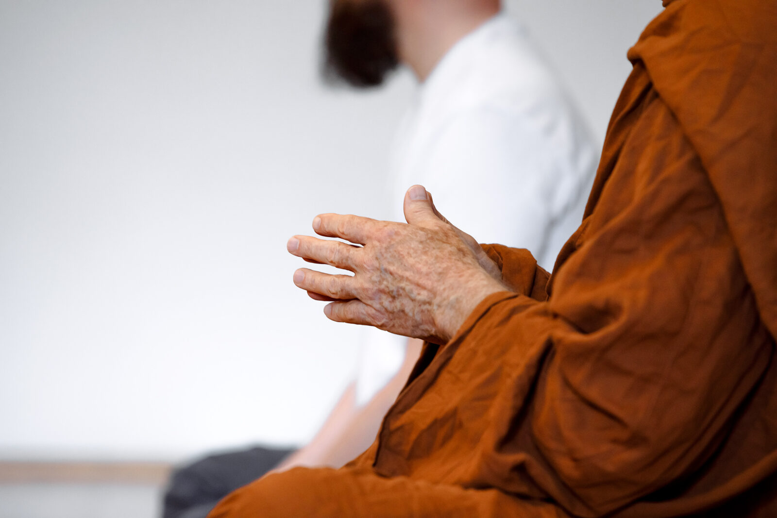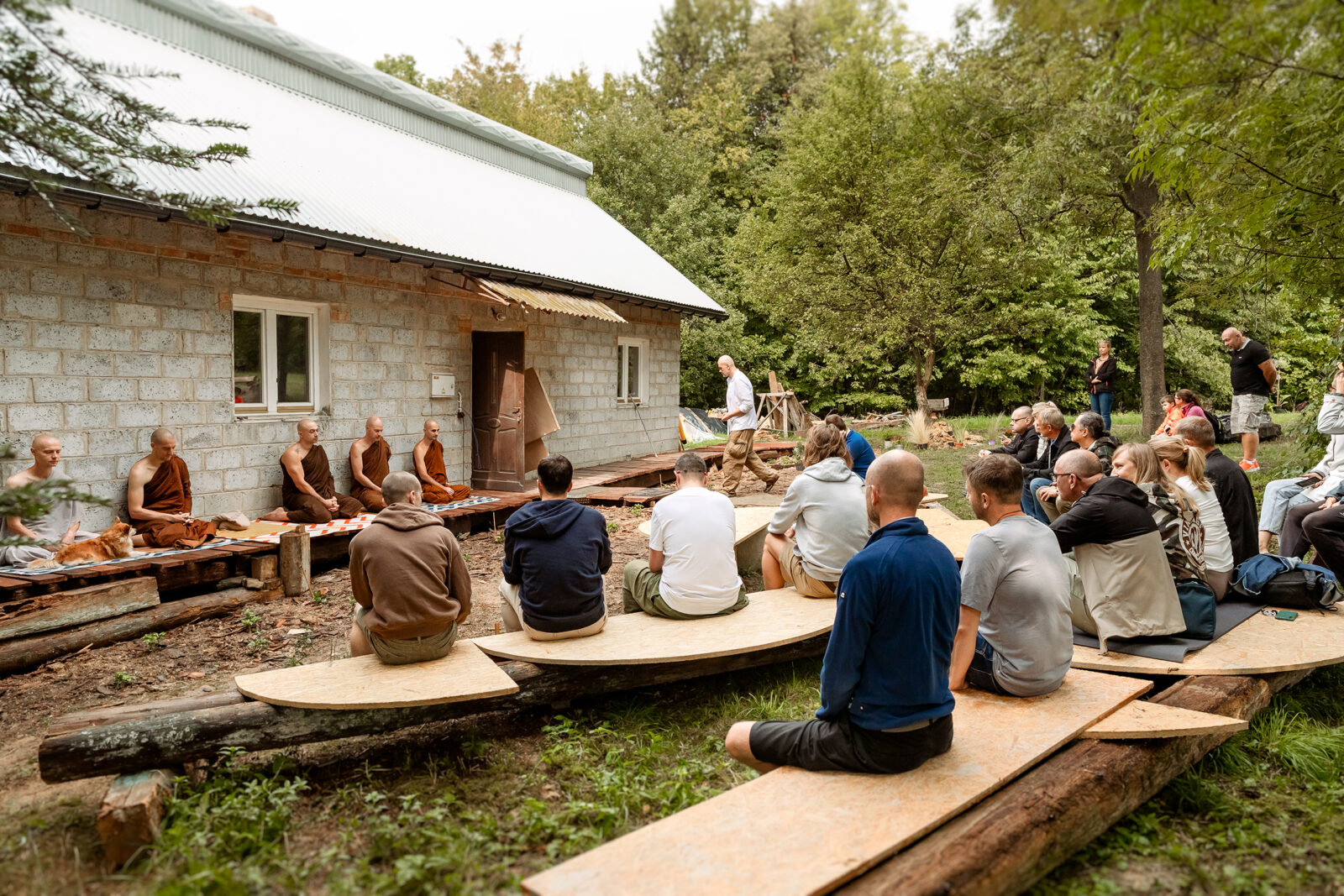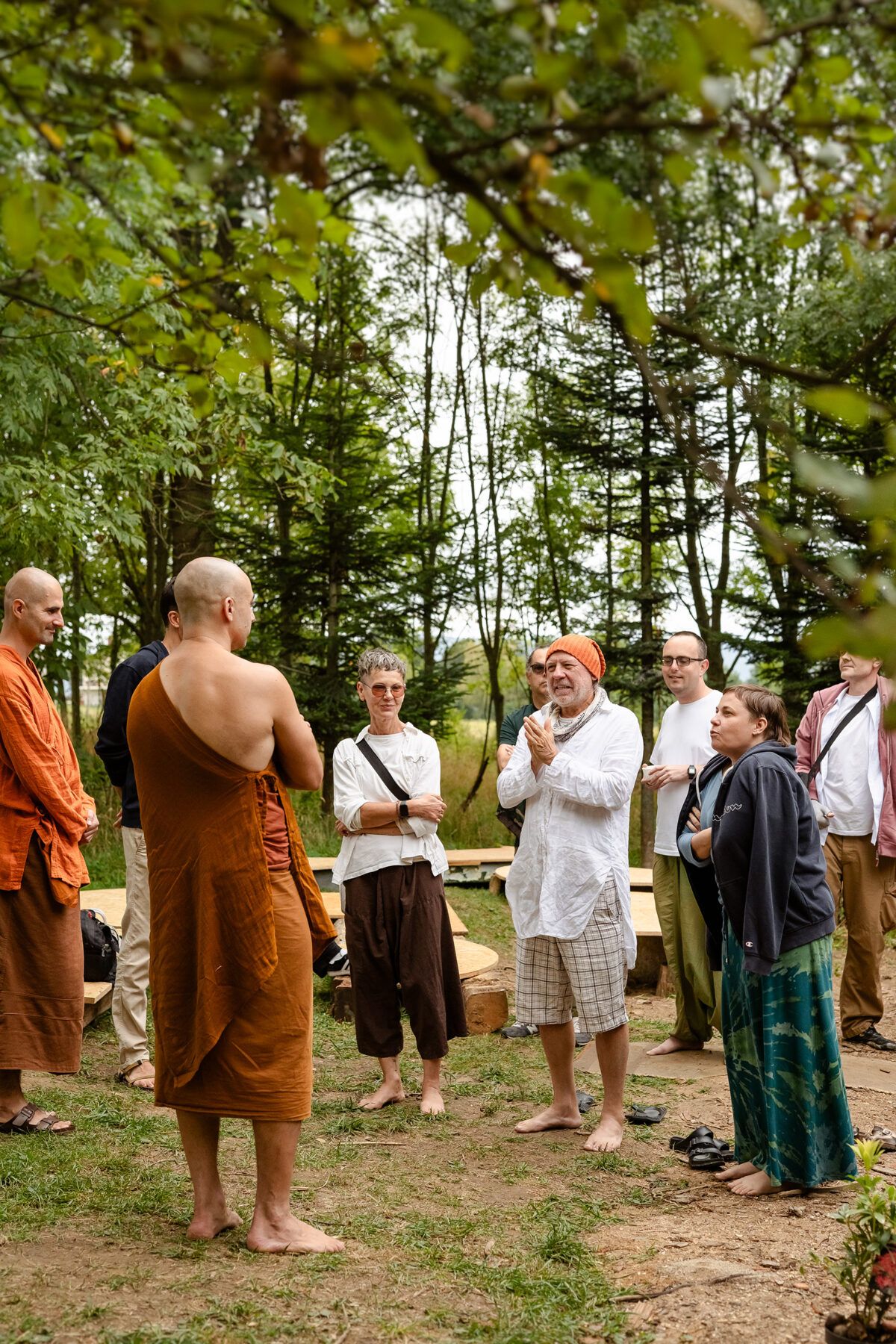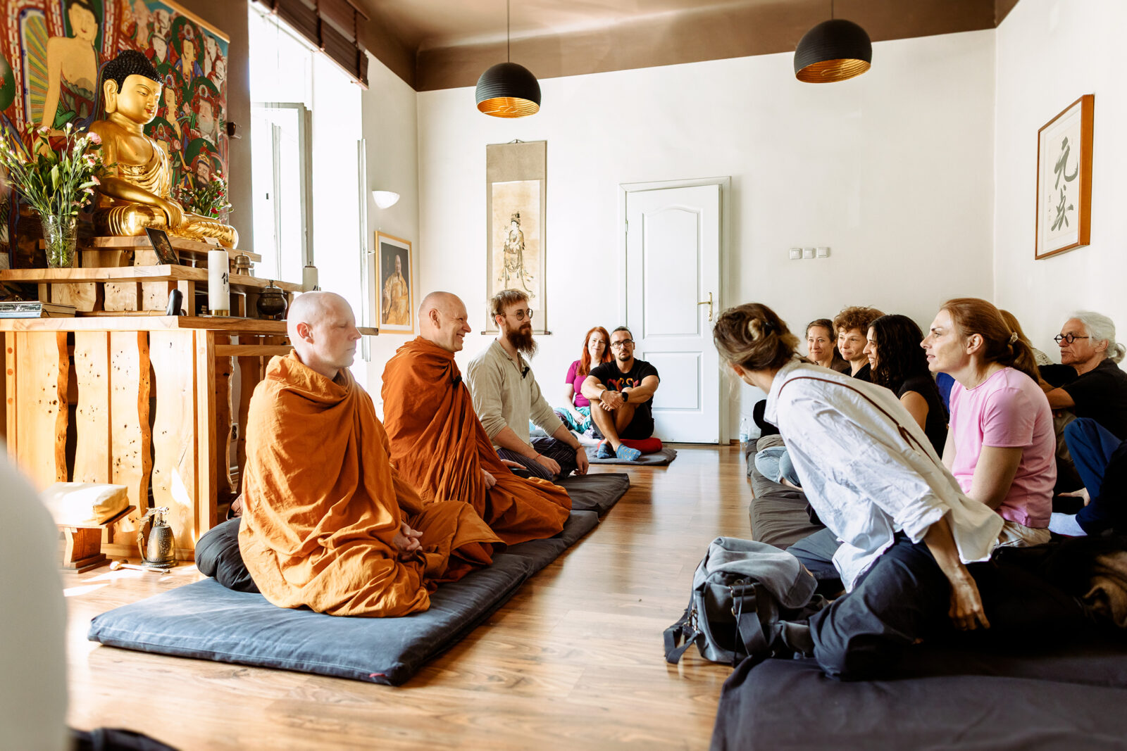 Jako fotografka – cicha i uważna obserwatorka wewnętrznych światów – nie szukałam wydarzeń ani narracji w potocznym sensie. Szukałam obecności. Tej szczególnej obecności, która rodzi się z intencji, zaufania i delikatnego wzajemnego rozpoznania. W tych przestrzeniach, których miałam zaszczyt uczestniczyć i również obserwować je przez obiektyw, nie było hierarchii: nie było mistrzów i wyznawców, nie było nauczających i nauczanych. Byli ludzie – spotykający się wokół Dhammy – którzy wspólnie przypominali sobie, że wyzwolenie jest możliwe.
